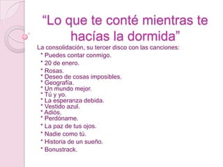 Letra de 20 de enero Verso 1 Pensé que era un buen momento Por fin se hacía realidad Tanto oí hablar de tu silencio Dicen que te arrastra como el mar Verso 2 Llené de libros mi maleta. I thought it was a good moment It was come true So much talk about your silence They say. Te perdi y no te perdere.